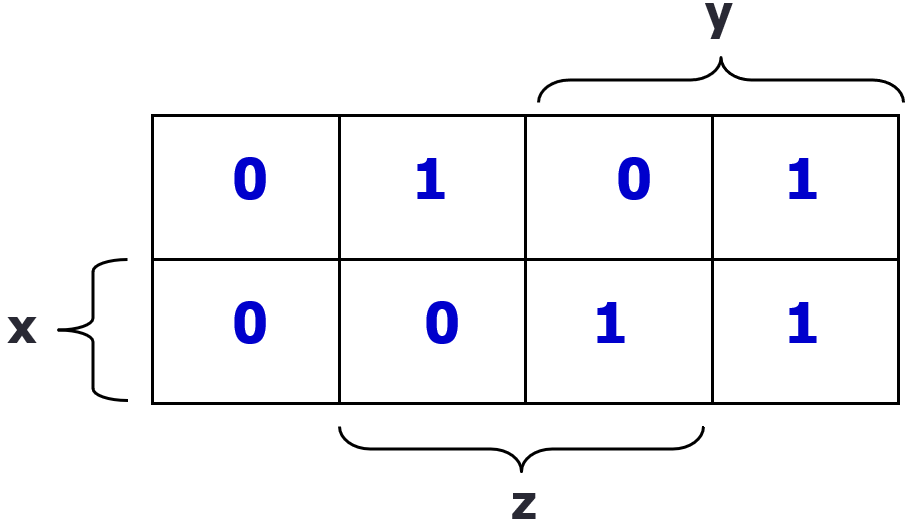 - take the y zβ term, this means the cells that are βinsideβ the y region, and βoutsideβ the z region are 1s